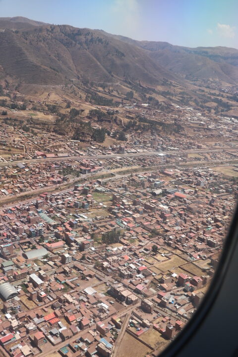 The flight to Cusco was terrific. Once we had left the Humboldt fog we saw more of the snow-capped Andes Mountains, the Altiplano and red dust from the quarries. On approach there were clearly strong winds which made the landing interesting. We were almost on the runway when downdrafts made landing impossible. We had to do a ‘go around’. Ten minutes later we were there!